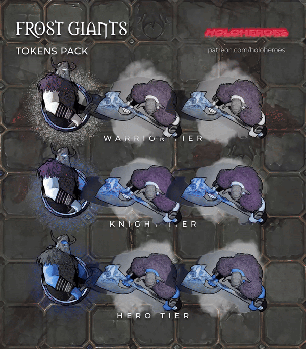 The pack contains 36 tokens: 12 top-down Animated tokens, 12 top-down Static tokens and 12 Portrait tokens. Don't forget to increase token dimensions in VTT!