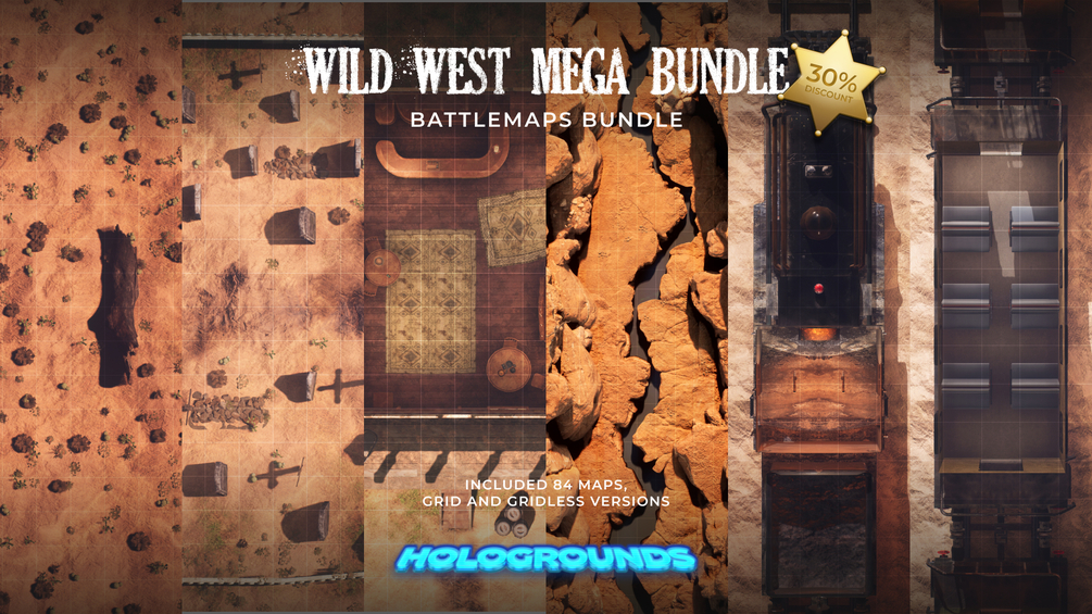 This Bundle includes ALL my Wild West static battlemap packs with 30% discount